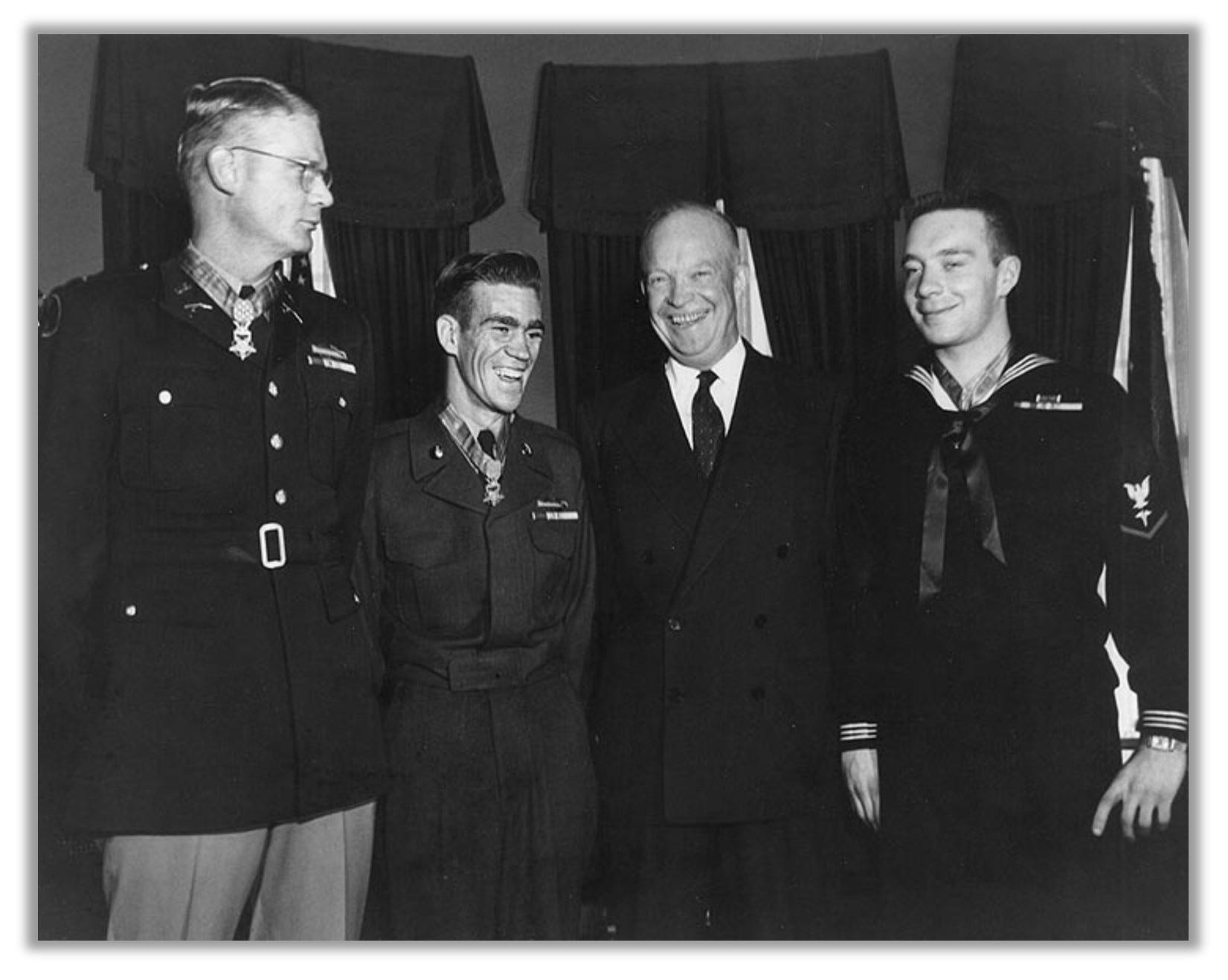 An uncle finally convinced him to go to Washington, D.C. to accept the Medal, which he received from Dwight Eisenhower. “In addition to this decoration, you have an old soldier’s admiration,” the President told him.